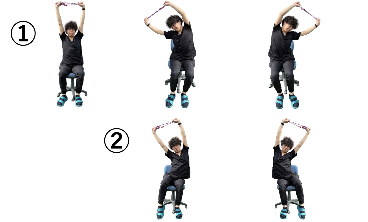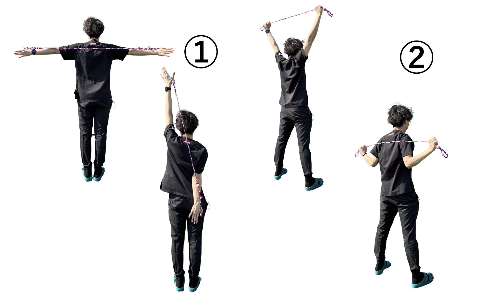 「腕を回す・引く・広げる」など、肩甲骨まわりの可動域UPに最適。