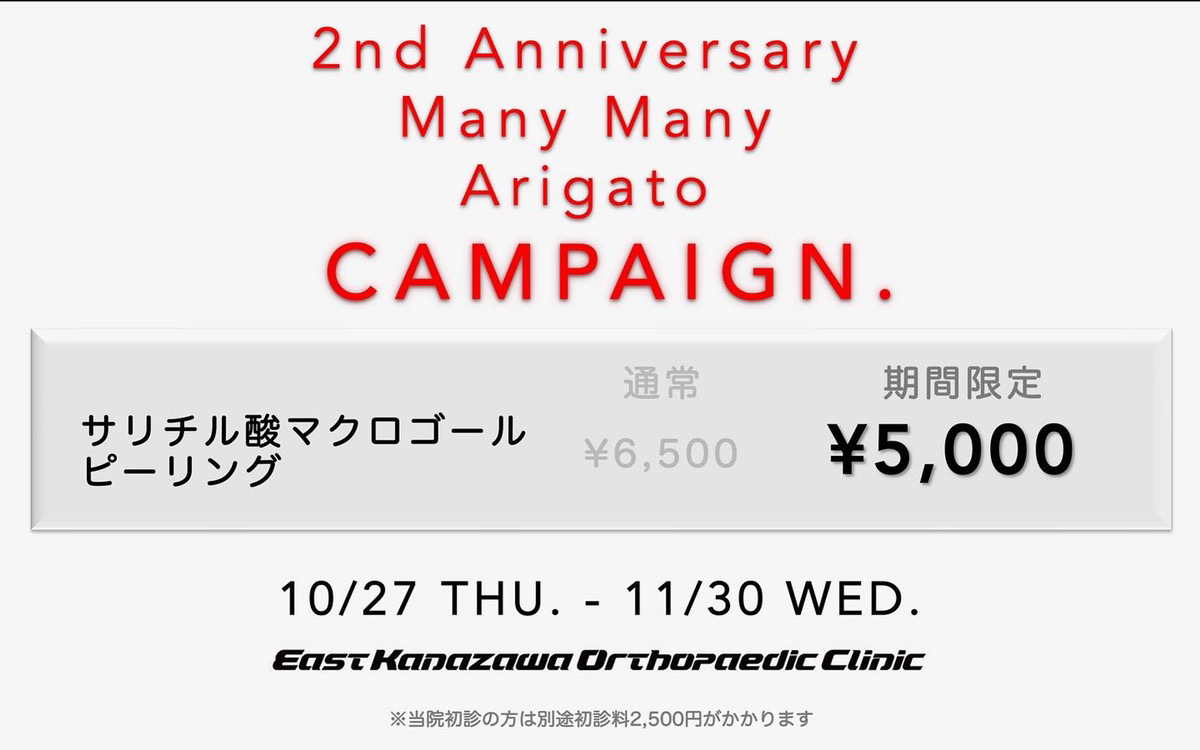 開業二年目の節目として、 10/27(木)より11/30(水)まで 期間限定特価とさせて頂きます。